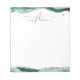 Personlig, elegant anteckningsblock med kalligrafi-skript initialer eller monogram och namn i guld och turkos med turkospaltagat och faux guld glitter accents. ÄNDRINGAR: Textteckensnittet stil, färg, storlek och placering kan ändras genom att klicka på REDIT om du vill se anpassningsbarna. ASSISTANS: Om du vill ha hjälp med designändringar eller anpassning, ändra storlek på färg, flytta designen till en annan produkt eller om du vill samordna produkter kontaktar du designern INNAN ORDERING via Chattan Zazzle MESSAGE nedan eller e-post makeitaboutyoustore@gmail.com.