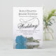 Denna vackra bröllopsinbjudan innehåller ett strålande foto av ett enda, långsökt, himlar-blått, turkos eller azure färgad ro som ljuger på sin sida och reflekterar i ett bassäng av vatten med vinkara och kramper. Utformningen har ett kalligrafiskt skript i finare med ett långt kort svan skapar det både modernt och klassiskt. Elegant, sofistikerad och chic till inbjudan för dina vänner och din familj till på din speciella dag. Kortets baksida är ett marmorerat ljusblått färg med en plusch mönster.