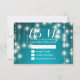 Bröllop OSA-svarskortsmallar - Elegant som skriver skript och Vintage String Ljus med turkos Blått Glitter-bakgrunden. En Perfekt för din stora dag! Alla textstorlekar i Stil, Färg kan anpassas efter dina behov.