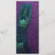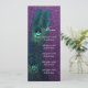 Vacker livfull lila glitterbakgrund med elegant turkosblå påfågelsfjäder bröllopsmeny och mottagningskort. Denna eleganta turkosa blå och lila påfågelbröllopsinbjudan kan enkelt anpassas för ditt evenemang. Du kan ta bort bakgrundsbilden från baksidan om du vill välja din egen enfärgade bakgrundsfärg som turkosblått eller lila för att matcha framsidan.