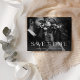 Denna klassiska och eleganta spara datum-postkort har två av dina personliga favoritbilder, med modern vit dekorativ typografi. Baksidan innehåller ett andra foto med en enkel genomskinlig överlagring och mer information om din bröllopsdetaljer.