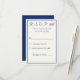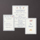 Design front features an elegant heading in a lovely navy-blue color displayed against a cream background. The images of the Sacred and Immaculate Hearts of Jesus and Mary are pictured at right. Your text is featured in navy-blue in the traditional format for a Catholic response card. Entire design is framed with an elegant matching border.
