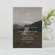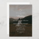 Modern fotobröllopsinbjudning i fullt med en elegant typografi som täcker ett romantiskt bergslandskap. Den rena designen blandar naturmiljön med förfinade detaljer, skapar det ett val av perfekt för par att planera ett bröllop eller firande i bergsområden eller utomhus med tidslös stil.