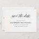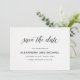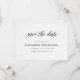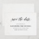 Dessa enkla och minimala inbjudningar från bröllop spara datum har svart kalligrafi på en vit, faux vattenfärgsbakgrund med pappert utseende.