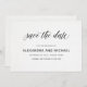 Dessa enkla och minimala inbjudningar från bröllop spara datum har svart kalligrafi på en vit, faux vattenfärgsbakgrund med pappert utseende.