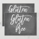 Utskrift som säger "Glutenfri" på en falsk kritskriftsbakgrund.