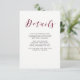 Detta fantastiska kort med information om bröllopsgäster har marsala-/burgunderfärgad kalligrafi tillsammans med modern svart text på en elegant vit bakgrund. Perfekt för ett formellt, traditionellt bröllop med en modern twist! Du kan använda dessa kort för att inkludera information om din bröllopsmottagning, köranvisningar, boende och allt annat som dina gäster behöver veta.
