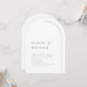 Elegantens svarta och vita minimalistiska typografi med snyggtens skript och färgreduktsteckensnitt och trendigets bågform är enkla och rena. Underbara inbjudningar till arch-bröllop för minimalistiska bröllop, moderna bröllop och klassiska bröllop. Visa alla matchande delar i samlingen.