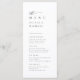 Elegantens svarta och vita minimalistiska typografi med snyggtens skript och det tidslösa serif-teckensnittet, enkelt och rent. Underbara menykort bröllop för minimalistiskt bröllop, modernt bröllop och klassiskt bröllop. Visa alla matchande biet i samlingen.