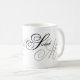 Ett skript monogram från första namn och det sista i modernt, minimalt färg som kontrasterar svart, vitt och grått.