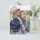 Bröllop Spara datum-kort som har ett foto på framsidan och baksidan. Spara datum-korten innehåller en modern handskriven kursiv typsnitts typografi som är elegant, enkel och modern att använda efter din minimalistiska enkla bröllopsdagfirande.