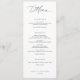 Klassisk än contemporary, har den här menyn för svartvit bröllop-middag elegant modern kalligrafi parad med förfinad typografi för ett lyxfritt, tidlöst utseende. Den enkla layouten och det balanserade mellanrummet skapar en sofistikerad presentation som högdagrar varje kurs på ett vackert sätt. Perfekt för formella mottagningar eller svarttids firande, ger den här designen en underskattad känsla av stil och ära till din décor från bröllop bord.