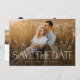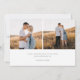 En Elegant Typography Photo Bröllop spara datum med utfallsfoto av fullt, modern text och enkel layout på framsidan. Baksidan har ytterligare två foton och mer information. Klicka på knappen Redigera om du vill anpassa designen.