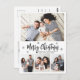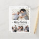Elegant, Modern Black and White 4 Photo Collage God jul Script Helgdag Postcard. Den här festliga, imimalistiska, vimiska 4 (4) fotokortsmallen innehåller en söt fotokollage, en snowflake och säger God jul! Texten "God jul" hälsning är skriven med ett vackert, svart, stavat typsnitt på vit färg-bakgrund. Söt hälsning vykort till din familj och dina vänner under denna jul och Julhelg.