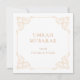 This is an elegant style Umrah Mubarak greeting card with a white ivory background. Give this as a printable to your friends and family members to celebrate and give warm wishes for coming back from their blessed Umrah trip. Islamic Muslim holiday card. This card has a gold baroque leaf filigree decoration in the corner of the frame to give a luxurious and royal-inspired feel. Simple golden script typography. You can personalize this beautiful card by changing the names to the people who are sending out this card. Antique design. You can edit the text on the back of the card to make it unique for you. Prayers. Blank envelope. Her line for design.