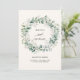 Denna raffinerade bröllopsinbjudan visar en grym andedräkt av eukalyptus och baby andedräkt, omgivande elegant-kalligrafi och serif-text. Med en mjuk elfenbensbakgrund erbjuder den en tidlös design som är perfekt för vår, trädgård eller minimalistiskt bröllop. De naturliga gröna och delikata blommigtarna tillför ett milt, romantiskt intryck.