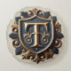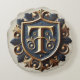 En lyxig heraldisk sköld prydd med invecklade guldmönster och dekorativa utsmyckningar. En tidlös design som frammanar elegans, tradition och prestige, lämplig för kungliga eller formella teman.