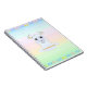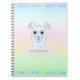 Elegant och vacker lama över molnen på flerfärgad pastellskuggad bakgrund Anteckningsbok. LLAMAZING text kan anpassas.