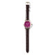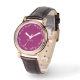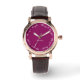 En elegant och festlig armbandsur, med orden 'Merry & Bright' upprepade runt kanten i elegant scripttypografi. Texten är vit, på en rik svartvinbärsmagenta urtavla. Personalisera denna stiliga klocka med ditt namn eller annan text för en individuell finish.