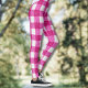 Elegant Valentine Pink Glitter Tartan on White Leggings