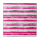 Elegant Valentine Pink Silver Hearts on Striped Kakelplatta