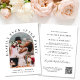 Elegant smittningsbegäran eller privat bröllopsinbjudan och mottagning. Framsidan visar ditt foto i en välvd ram och "Happily Ever After Party" i elegant typografi. Under ditt foto lägger du dina förnamn, bröllopsdatum och plats. På baksidan anpassar du din inbjudan, lägger till era namn i ett signaturliknande skript och anger er bröllopswebbadress för att skapa en skannbar QR-kod så att era gäster kan svara online och få ytterligare information.