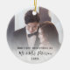 Minimal och modern personlig Första julkeramiska prydnadsföremål med handskrivet skript i elegant och gradient faux white marble struktur. Anpassa produkten med året, familjen namn och två av dina favoritfoton i bröllop.