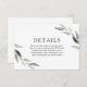 Elegant vår sommar grönt blad bröllop detaljer Enclosure Card