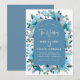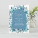 Bröllbjudan till elegant vår, vit dammig blåa blommor. Gratulera till kärlek med inbjudan till anpassadet vår bröllop, med en tidlös, dammig, blå och vit blommigt. Fintliga blommigtar med vattenfärg och mjuka blått nyanser skapar ett romantiskt och sofistikerat utseende, perfekt för ett vår- eller trädgårdsbröllop. Ange tonen för din speciella dag med en vackert designad inbjudan som återspeglar stil.
