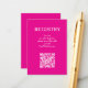 Ett varmrött bröllopspresentregistreringskort med bifogad QR-kod att skanna och webbadressen till er registrerings- och bröllopsinformation. ***TECKENSNITT KAN ÄNDRAS när du anpassar denna design. FLER färger finns tillgängliga i vår butik.
