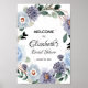 Elegant blomsterkrans av lila blommor och blad, perfekt som välkomstskylt för din blivande bruds bröllopsdusch. Standardstorlek är 8 x 12, men du kan ändra storleken. MATCHANDE inbjudningar och mer i vår butik.