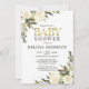 Elegant vattenfärg blomsterguldkantad baby shower inbjudningar