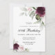 Fira en speciell 100-årsdag med denna vackra partiinbjudan med blommigt gräns i burgundi och rosa ros på vardera sidan om den elegant placerade texten. Färg omfattar blekens rosa, djup burgundröd och plommon blandad med eterisk grön och små vita accentblommor. Anpassa textmallen med din information. Du kan redigera åldern till vilken ålder som helst.