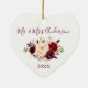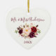 Elegant Vattenfärg Burgundy Blommigt Bröllop Heart Julgransprydnad Keramik