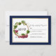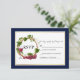 Modern elegant vattenfärg druvor och rankor träkranstillbehör bröllop RSVP-kort - Marinblå bakgrund och guld ram