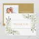 Elegant vattenfärg grönska foto guld tack kort
