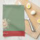Ursprunglig vattenfärg som skapats av butiksägaren. Den här kökshandduken med en guld-dekoration som är försedd med vinter-blommigtar i elegant på gröntens bakgrund med röd accent skapar en varm och mysigt helgdag. Anpassa meddelandet och namn efter dina behov.