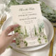 Bröllop spara datum med vackra vattenfärg illustrationer av trädgårdar och fontäner i kombination med elegant skript och seriffer typsnitt där all din personliga information är skriven. Du kan hitta fler matchande produkter från denna fantastiska bröllopssamling i vår butik.