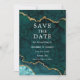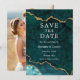Modern Elegant Vattenfärg Teal och Guld Marmor Agate Geode Spara Datum Kort - Foto Baksida