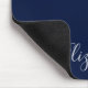 Modern Elegant Vattenfärgad Mus Pad med blandad Blommigt omfattar burgundisk ro, rosa ros, blåa blommor, rödblommor och vackra botaniska grönområden. Navy Blue Background med ditt namn i skript för snyggt,