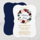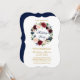 Elegant Inbjudan till Julfest av vattenfärg Burgundy Marsala Blommigt. Omfattar vackert ro och botaniskt grej. Bracket Stil. Blått bakåt. Guld-skript.