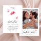 Fånga kärnan av kärlek med Eleganten Watercolor Rosa Flower Inbjudningskort för möhippan. Den här inbjudan är perfekt för trädgårdsodla firande eller mysiga möhippor i vår. Den är försedd med drömmande rosa vattenfärgsfjärilar och romantiska blommor. Anpassa den med din text och bild för att skapa en oförglömlig upplevelse för den blivande bruden som tar hand om fjärilar.