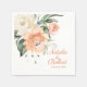 pappra servetter från elegant bröllop till er mottagning. Den här designen har vattenfärgsvit kräm, aprikosrosa ro och grönt löv. Du kan redigera teckensnitt, färg och storlekt.