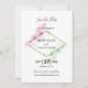 Den här designen har blommor i elegantens rosa och gröntens vattenfärg. Den vackra blommigten för rosa och grönt, färg, gratulerar guld diamant ram och svart text. En vattenfärgsdesign för blommor i eleganten ordnas runt titeln. Användan av klassindelning för ordalydelsen kompletterar utformningen. Den här utformningen passar perfekt för alla bröllop-teman. Perfekt bröllop spara datum-kortets utformning för alla säsonger. Det finns också möjlighet att matcha bröllopsinbjudningar och andra artiklar i kontorsartiklar.
