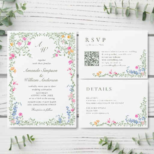 Elegant Vattenfärgsblommor Vild Flowers Bröllop Mi Meny