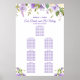 Lägg till din egen speciella beröring till den här elegantens blommigt för lila av vattenfärg med modernt skript och lila text. Den här sittplatskartan har namnen från bruden och brudgummen tillsammans med orden "Ät, Drick, Var vänlig och hitta ditt säte". Mallar finns för upp till sju bord med upp till 10 eller 11 namn per bord.