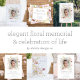 Det här vackra minnesfotot som du använder har en klassisk vit bakgrund och vattenfärgade blommor med enkel typografi, men ändå med elegant. Skriptet på framsidan säger "Tack". På insidan finns det gott om utrymme för ditt anpassade personliga meddelande. Om du vill att insidan ska vara tom kan du helt enkelt ta bort den texten från mallen i verktyg för anpassning.