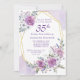 Elegant Watercolor Lila Blommigt 35e Födelsedagsfest inbjudan med guld ram i söt lila och lavender ro och blommor.