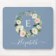 I den moderna Eleganten Watercolor Rosa Blommigt Wandeand Mouse Pad ingår rosa ros, vita blommor och vackra botaniska grejer. Dusty Blue Background. Personlig med ditt monogram initial och namn i ett Snyggt-skript.