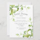 Enkel och så miljövänlig elegant av söt med ett minimalistiskt, tunt teckensnitt. Löv omger detta vackra inbjudningskort för möhippan.